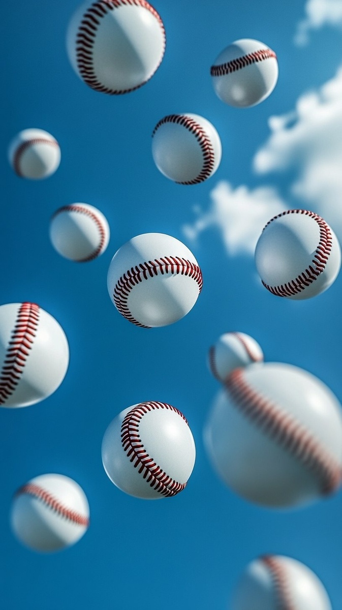 Создано на основе запроса: Ten baseballs are flying in the blue sky scattered
