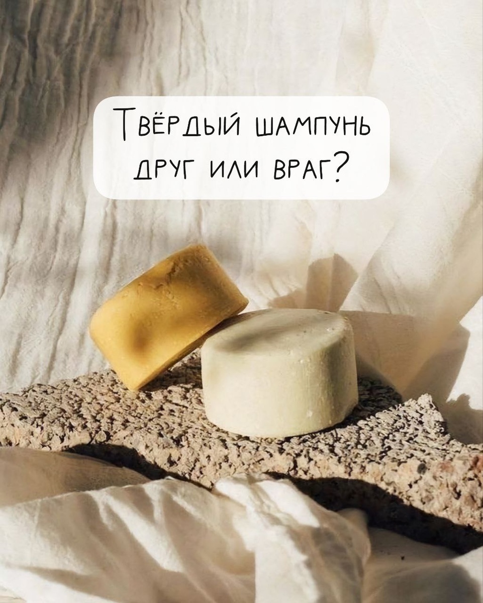 Даже у прожжённых бьютиголиков, как я, бывают прозрения Всего полгода назад я наконец-то распробовала твёрдый шампунь — до этого смотрела на него с лёгким недоверием. Казалось, ну как такая мыльная шайба может справиться с тем, с чем не справляются литры привычных бутылок? Но стоило попробовать — и всё. Возврата к прежней жизни нет. Теперь твёрдый шампунь — мой верный спутник в баню, в путешествия и даже в спортзал Он компактный, ничего не проливается, не отнимает место в сумке, и при этом работает не хуже, а порой даже лучше — жидкого. Чистая голова, лёгкий объём, никакой силиконовой плёнки, плюс натуральный состав — без SLS, парабенов, силиконов и прочей лишней химии Для тех, кто заботится об экологии — это отдельный плюс. Минимум упаковки, всё перерабатывается, никаких пластиковых бутылок. А ещё — экономичность. Один брусок заменяет флакон 300 мл и может хватить на полтора месяца (да, я проверяла) Как использовать? Намочить, вспенить в руках или провести по волосам — и дальше вс