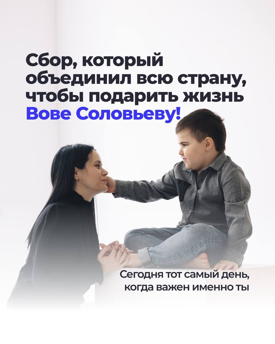 ЭКСТРЕННЫЙ И МАСШТАБНЫЙ СБОР! Я молю Вас сделать рывок и закрыть сбор до 28 мая.🙏🏻 В этот день ровно год назад мы открывали сбор, что будет «завтра» не скажет ни один врач и если не успеть, Вова окажется в инвалидном кресле, а дальше летальный исход. ⏳40 дней 👥242 897 человек по 500 руб 🚨 или любая посильная сумма Сейчас на счету каждый день. Вова Соловьев, 8 лет, Диагноз: Миодистрофия Дюшенна. Все документы, фонды и перевод с зарубежных карт по ссылке в описание @savevova2024 Сумма сбора: 262 000 000руб. Осталось собрать: 121 448 178руб. НАМ НУЖНА ПОДДЕРЖКА ЛЮДЕЙ!🙏🏼 Отправьте это видео своему другу, выставите в статусы WhatsApp и телеграмм. Реквизиты: Перевод по номеру тел.+7(918)499-99-81 Заира Масхудовна С. (Мама) СБЕР: 2202 2080 9980 3240 БКС: 2203 6203 2117 2591 В комментариях к платежу: Вове на лечение.