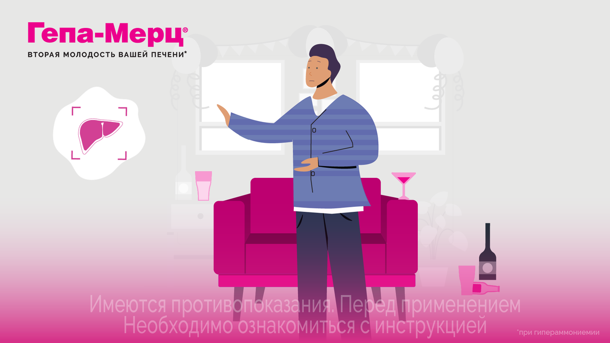 Оказывать поддержку печени может «умный помощник», препарат Гепа-Мерц® – оригинальное немецкое лекарственное средство, зарегистрированное на территории РФ с 1993 года. Гепа-Мерц® начинает действовать через 15 минут⁷; за счет содержания аминокислот L-орнитина-L-аспартата способен снижать уровень аммиака и бороться с признаками печеночной энцефалопатии5*.