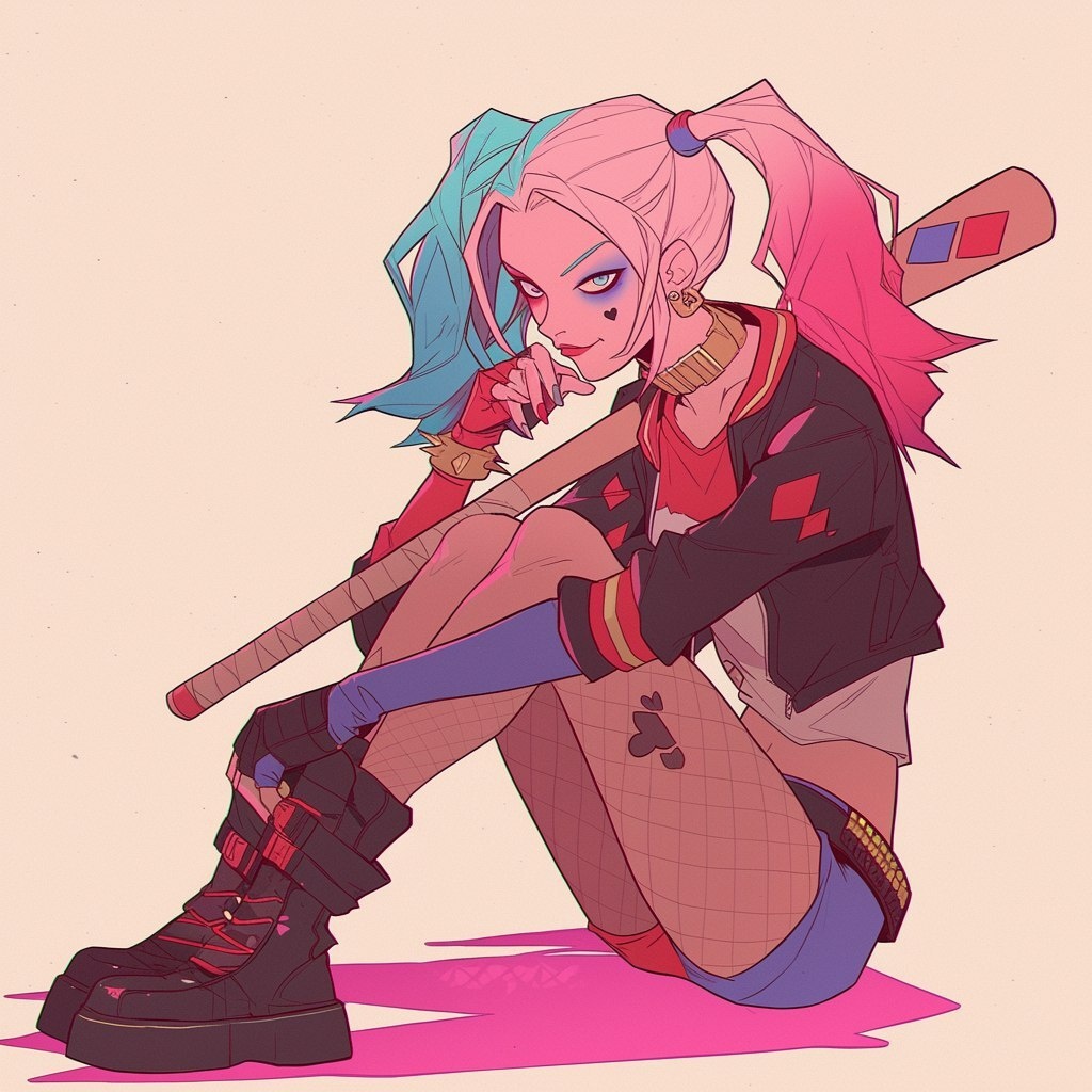 Создано на основе запроса: Harley Quinn in adventure time style, pastel colours --- Автоперевод: Harley Quinn в стиле приключений, пастель Классно вышло? 🤔 https://dzen.ru/id/65c0c65c86e4f837c27b24d7 #ИИ #AI #нейросеть #midjourney #art