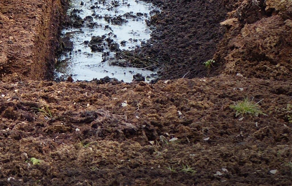 По периметру участка и вдоль грядок выкапывают дренажные канавы глубиной 30–50 см с уклоном в сторону водосборника.