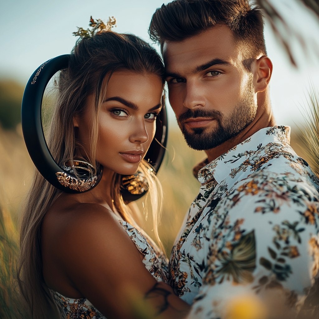 Создано на основе запроса: Hiperrealistic studio-like photo of very natural beautiful woman top model with a natural handsome man, in casual clothes, standing next to each other in meadow, all body, two giant black gold wedding rings in the background, spring vibe --- Автоперевод: Хипералистическая студийная фотография очень естественной красивой женщины-топ-модели с естественным красивым мужчиной, в повседневной одежде, стоящей рядом друг с другом на лугах, все тело, два гигантских обручальных кольца черного золота на заднем плане, весенняя атмосфера Хорошо выглядит? 🤔 https://dzen.ru/id/65c0c65c86e4f837c27b24d7 #ИИ #AI #нейросеть #midjourney #art