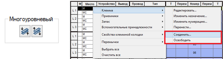 Группа «Многоуровневый» «Редактора клеммных колодок»