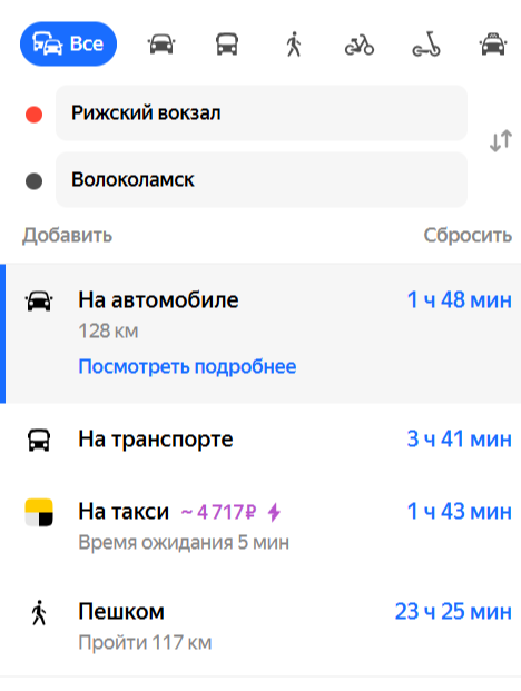 — Общественным транспортом — сложнее, но возможно: до Волоколамска электричкой или автобусом, а дальше — на такси или с местными договориться.