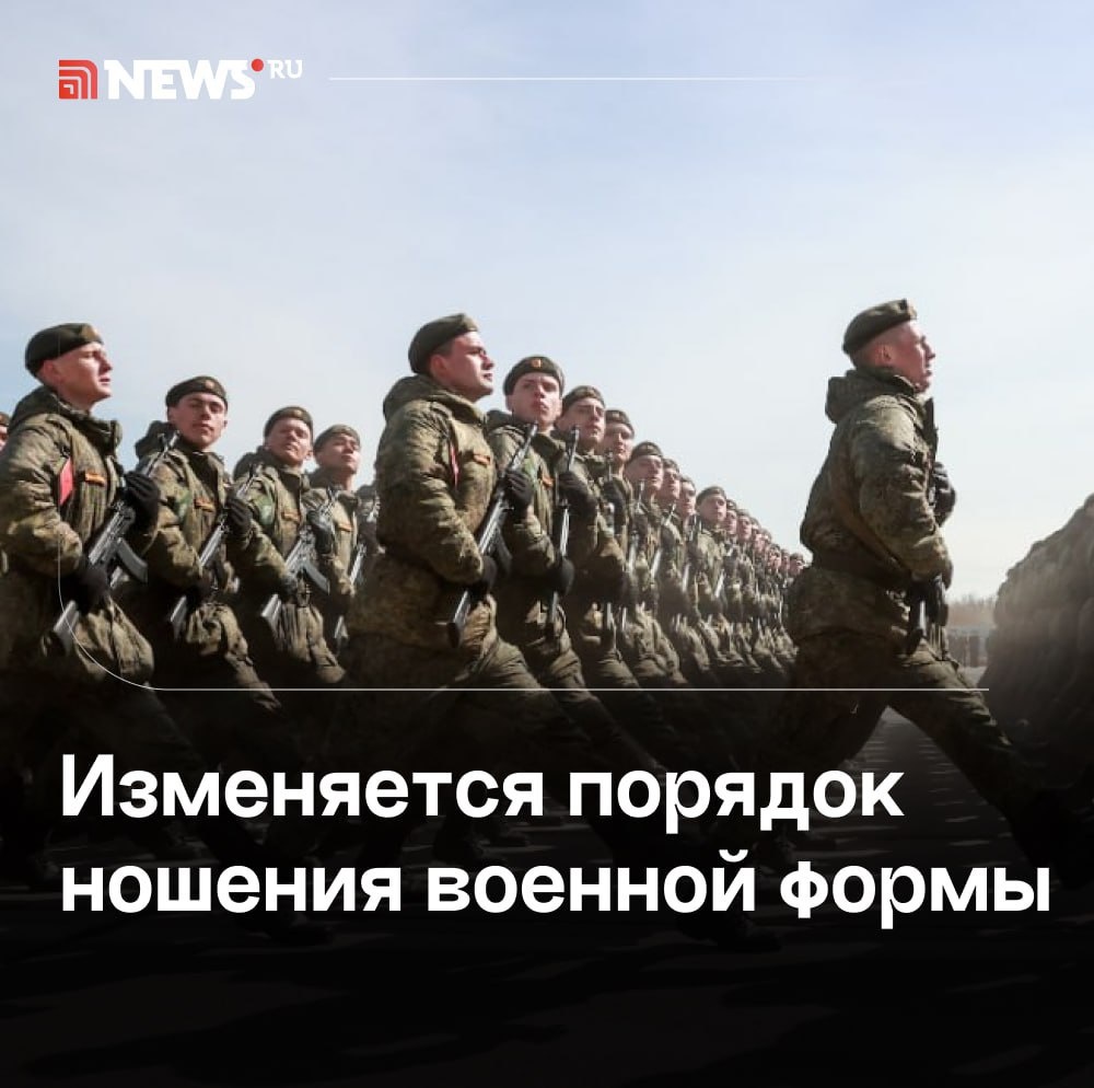 Путин подписал указ о масштабных изменениях в правилах ношения военной формы: 🟤Введены новые элементы шитья и нашивок для офицеров, прапорщиков и курсантов, в том числе для высшего командования ФСБ и Главного управления спецпрограмм; 🟤Для военнослужащих ФСО добавлены канты василькового цвета на фуражках и погонах; 🟤Для сотрудников разведки и ФСБ введены новые комплекты летней и зимней экипировки, включая камуфляжные куртки, утепленные головные уборы, защитное белье, носки и обувь для разной погоды; 🟤Уточнены правила ношения формы для женщин-военнослужащих, в том числе в морских частях и учебных заведениях ФСБ; 🟤Обновлена морская форма, в частности погоны для офицеров ВМФ и сотрудников ФСБ, проходящих службу на флоте. ⭕ Подписаться | Прислать новость | Буст