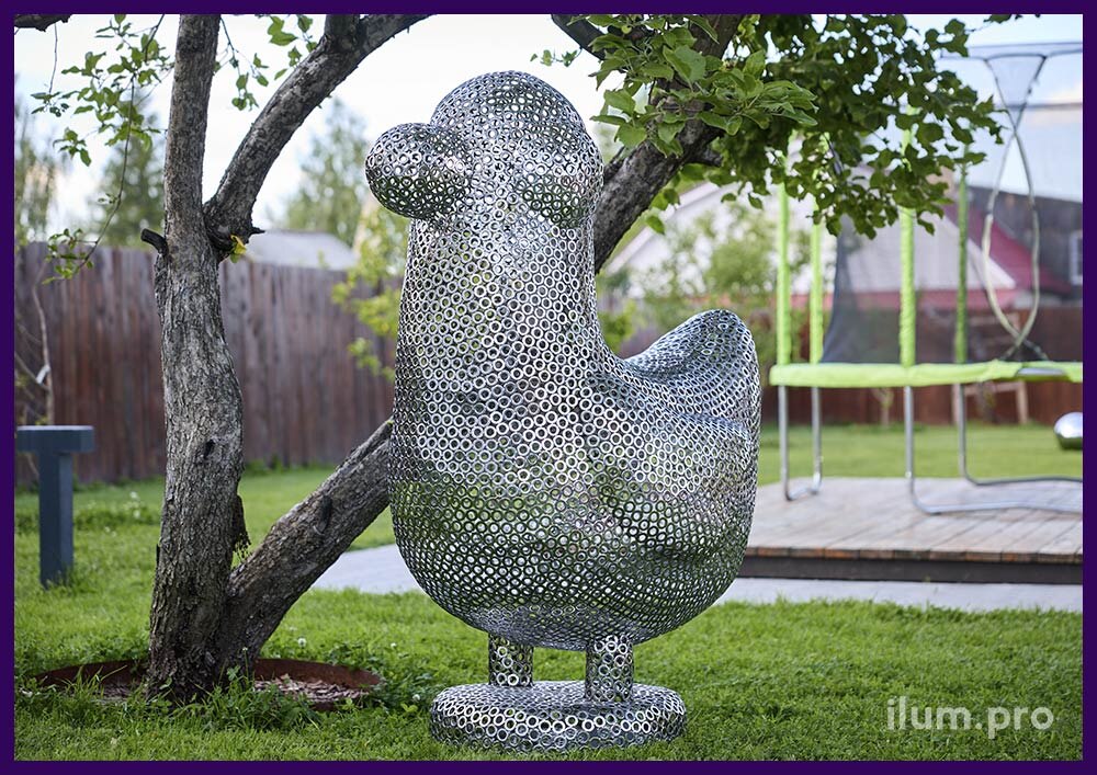 Уникальная скульптура утки, созданная из сотен стальных шайб. На первый взгляд, концепция кажется лаконичной, однако именно в простоте и кроется её исключительная ценность. Каждая деталь скульптуры является результатом кропотливой ручной работы, трансформирующей материал в выразительный арт-объект.
