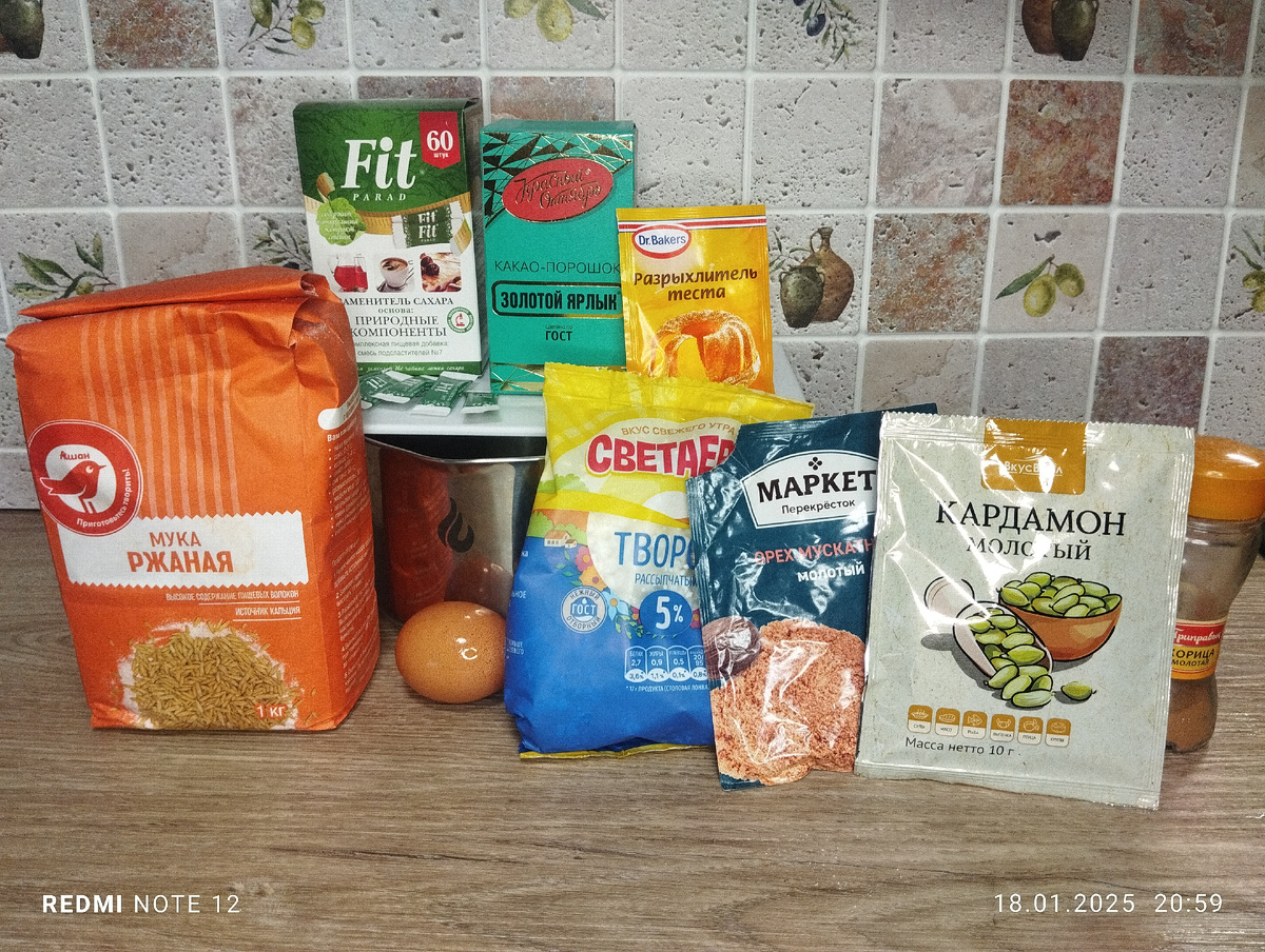 Готовятся просто, аромат и вкус потрясающий! Углеводов 17,5 грамм на 100 гр. Так было написано в рецепте. Кол-во специй можно менять на свой вкус, но первый раз попробуем по рецепту! Пряности по вкусу: 1. Творог соединяем с яйцом и пряностями, пробиваем блендером. До однородности: 2. Добавляем в смесь разрыхлитель, какао и перемешиваем. 3. Добавляем ржаную муку. Тесто должно получится в меру упругим, не сильно плотным. Выкладываем тесто в миску. Собираем его в кучку, несколько раз поднимаем, подкидываем, без фанатизма. К рукам тесто не должно липнуть, руки не пачкает. 4. Руки смазываем водой и формируем шарики и выкладываем на противень. Я положила на антипригарный коврик для выпечки, немного смазанный маслом. Сверху шарики немного приплюснула. 5. Разогреваем духовку до 160 С. Выпекаем 20-30 минут. Запах изюмительный! 6. Снимаем с противня и оставляем остывать. Пряники не будут мягкими булочками, а именно пряничками, лучше делать заранее, чтоб дать им хорошенько остыть. Вот у нас п