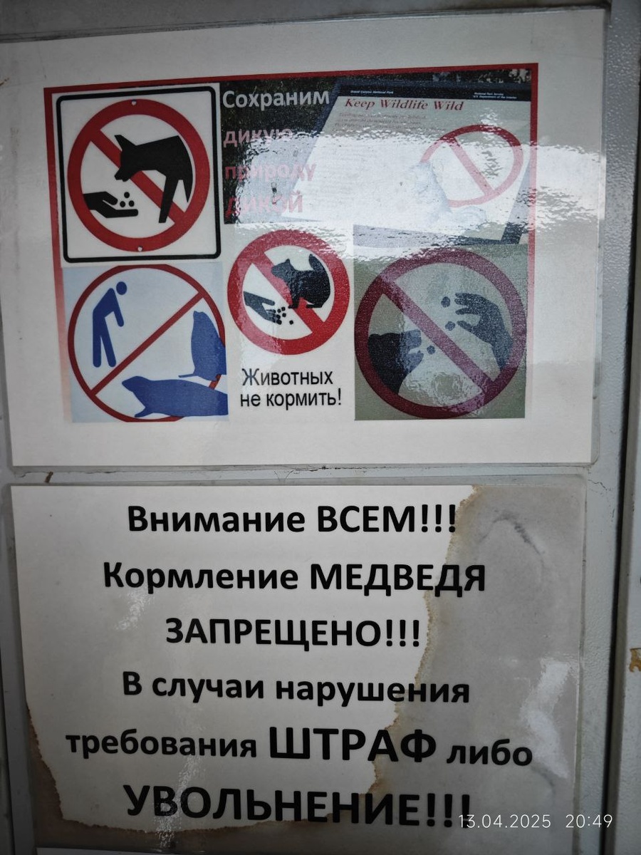 Медведей не кормить!!! На каждой двери эта фраза. На картинке указано, что ни волков, ни медведей, ни тюленей, ни белок кормить нельзя. Белки … Наш городок стоит в 1-1.5 км от стройки и в какой-то момент я решил пешком дойти, чтобы никого не напрягать. Перед выходом решил уточнить у «местных», можно ли пешком пойти. Оказалось, что вообще нельзя пешком и причина – волки. Волков там много, все обмениваются фотками серых ребят. Медведей пока не видели (т.е. не разбудили), но волки – это реальная опасность. На другом проекте в Забайкалье мне как-то рассказали, что в одну зиму (когда пришли нефтяники строить трубу) разбудили медведей и они пошли в соседний городок за едой. Погибло более 20 человек.