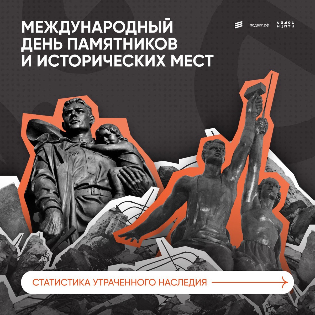 Они рассказывают без слов. О людях. О времени. О подвиге. Памятники и исторические места — это наша память, запечатленная в камне и металле. Но даже ей нужно бережное отношение. Сегодня, в День памятников и исторических мест, мы собрали статистику по утраченному историческому наследию. Многие памятники находятся в плохом состоянии и под угрозой исчезновения. Мы призываем не оставаться равнодушными. Только вместе получится сохранить это наследие и вернуть ему достойный вид. К маю мы анонсируем продолжение онлайн-игры «Памятники» — ее вторая версия посвящена памятникам Великой Отечественной войны. 💛 Подписаться на Подвиг.РФ #подвигрф #памятники #историческиеместа #наследие