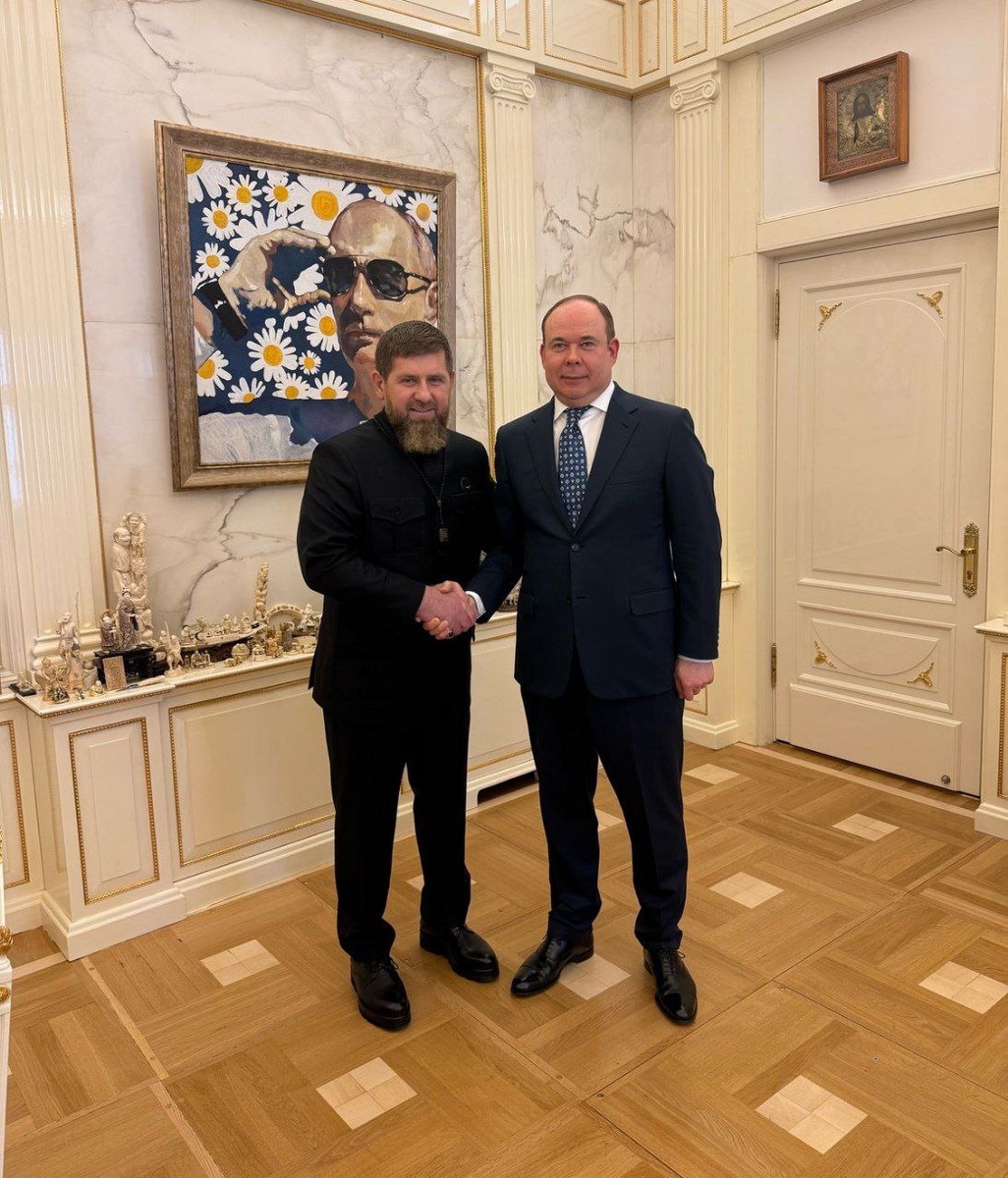 Глава Чеченской Республики в рамках рабочей поездки в Москву встретился с Руководителем Администрации Президента РФ Антоном Вайно. Об этом Рамзан Кадыров написал в своем телеграм-канале.
