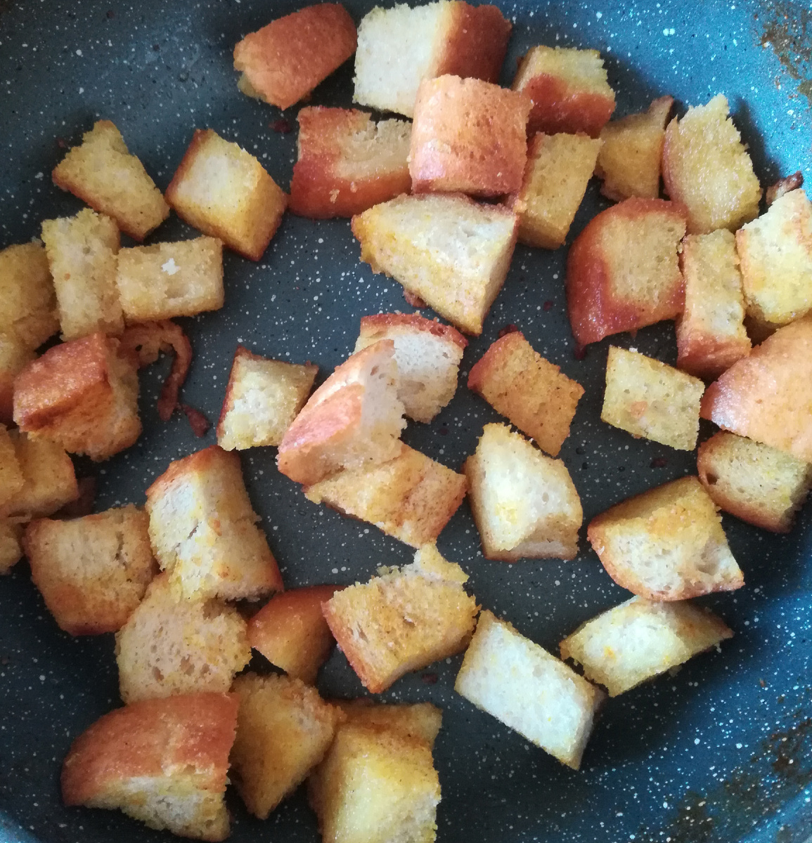 Здравствуйте, друзья! Хочу поделиться рецептом быстрого и сытного салата с помидорами. Что нам понадобится: Помидоры свежие 2-3 шт. Яйца варёные 2 шт. Сухарики Майонез или сметана Тёртый сыр по желанию 1. Сначала готовим сухарики либо берём магазинные, но лучше сделать самостоятельно. Так получится вкуснее и можно использовать специи по вкусу, которые вам нравятся. Я обжариваю сухари на сковороде с добавлением небольшого количества масла плюс куркума, паприка и немного красного перца. Хлеб использую белый, с ржаным не пробовала, поэтому советовать не могу. Одновременно с сухариками ставим вариться яйца. Оптимально взять 2 яйца, но можно и больше!) Нарезаем помидорки. Количество, конечно, варьируется по желанию. Далее собираем салатик вместе. Сухарики лучше добавить в самом конце, чтобы они не размякли от помидоров. Заправляем майонезом или сметаной, солим, перчим. Наслаждаемся сытным и вкусным салатом, который не стыдно и гостям подать. Сверху можно украсить терты