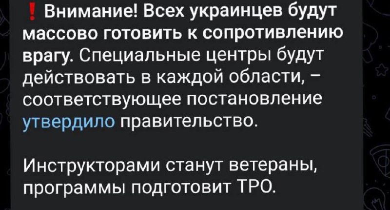 πͺ ΠΠΎ Π²ΡΠ°ΠΆΠ΅ΡΠΊΠΈΡ ΠΊΠ°Π½Π°Π»Π°Ρ ΡΠ°ΡΠΏΡΠΎΡΡΡΠ°Π½ΡΠ΅ΡΡΡ ΠΈΠ½ΡΠΎΡΠΌΠ°ΡΠΈΡ ΠΎ ΠΏΠΎΠ΄Π³ΠΎΡΠΎΠ²ΠΊΠ΅ Π²ΡΠ΅Ρ ΠΆΠΈΡΠ΅Π»Π΅ΠΉ Π£ΠΊΡΠ°ΠΈΠ½Ρ ΠΊ ΡΠΎΠΏΡΠΎΡΠΈΠ²Π»Π΅Π½ΠΈΡ.