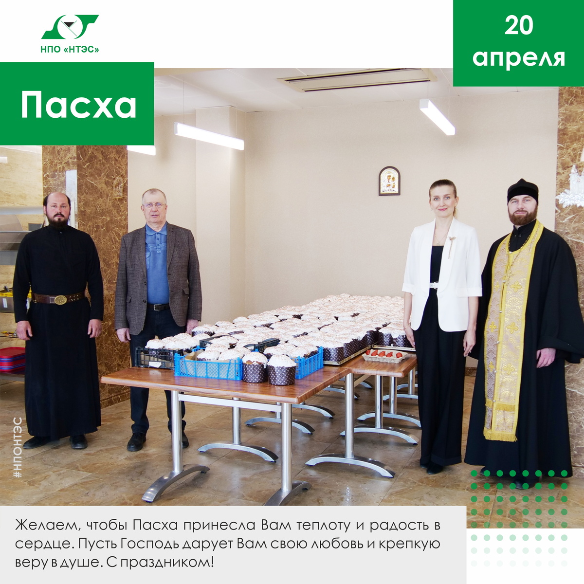 20 АПРЕЛЯ – ПАСХА (ВОСКРЕСЕНИЕ ХРИСТОВО ИЛИ СВЕТЛОЕ ХРИСТОВО ВОСКРЕСЕНИЕ) – главный праздник православных христиан. Пасху, православные верующие ликующе встречают сразу после самого строгого в году Великого поста. Накануне Пасхи верующие собираются в храмах около полуночи на праздничном богослужении. Утром верующие освящают в церкви пасхальные яйца, творожные пасхи и куличи. В нашем Обществе существует ежегодная традиция, когда батюшка освящает испеченные в нашей столовой куличи. Христос воскресе! В этот светлый и чистый праздник желаем в Ваш дом добра и благодати. Пусть на душе всегда будет спокойно, над головой – мирное и ясное небо, а рядом – надежные и верные друзья. Желаем, чтобы Пасха принесла Вам теплоту и радость в сердце. Пусть Господь дарует Вам свою любовь и крепкую веру в душе. С праздником! https://nponts.ru