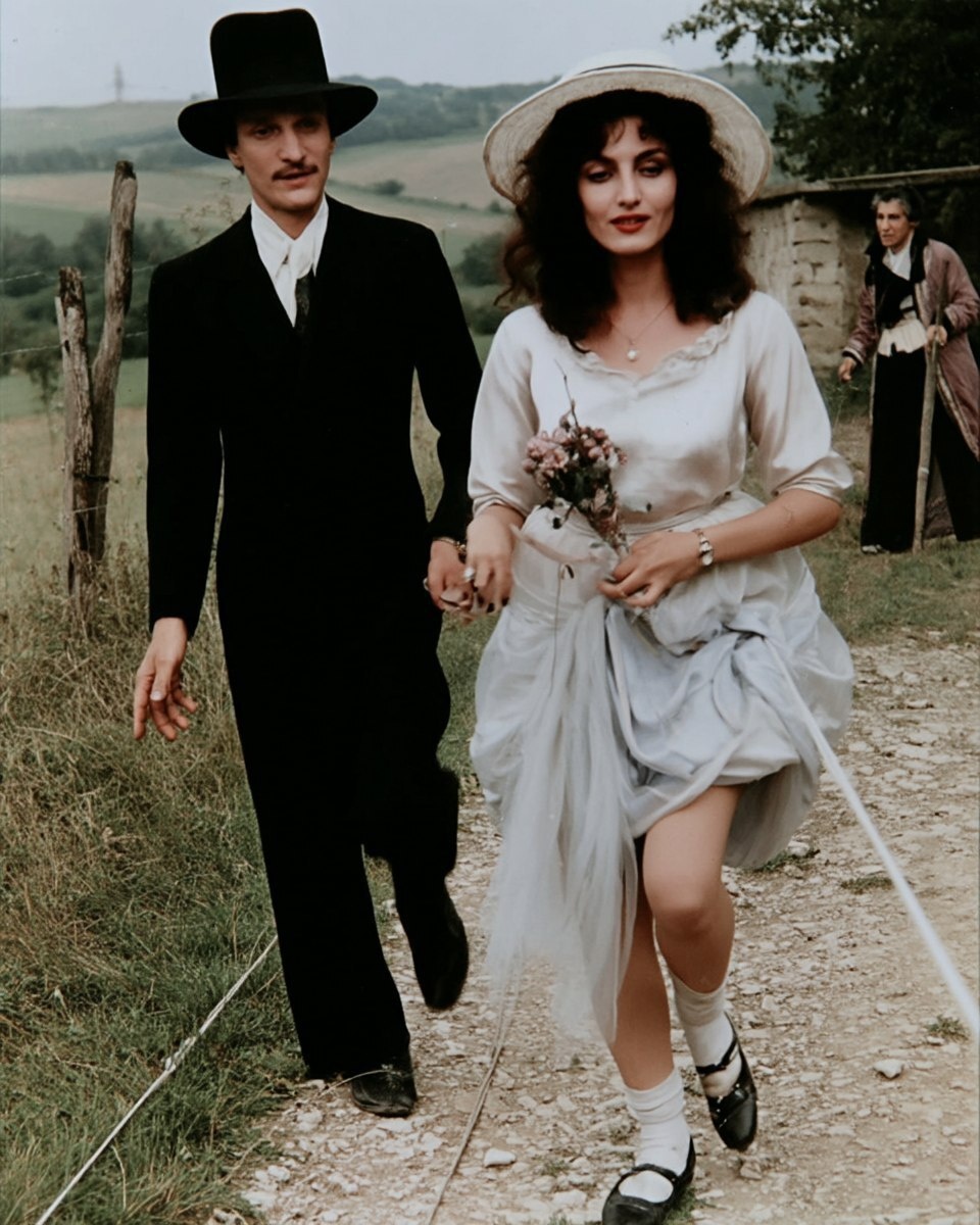 Создано на основе запроса: A couple in wedding attire walking a tight rope