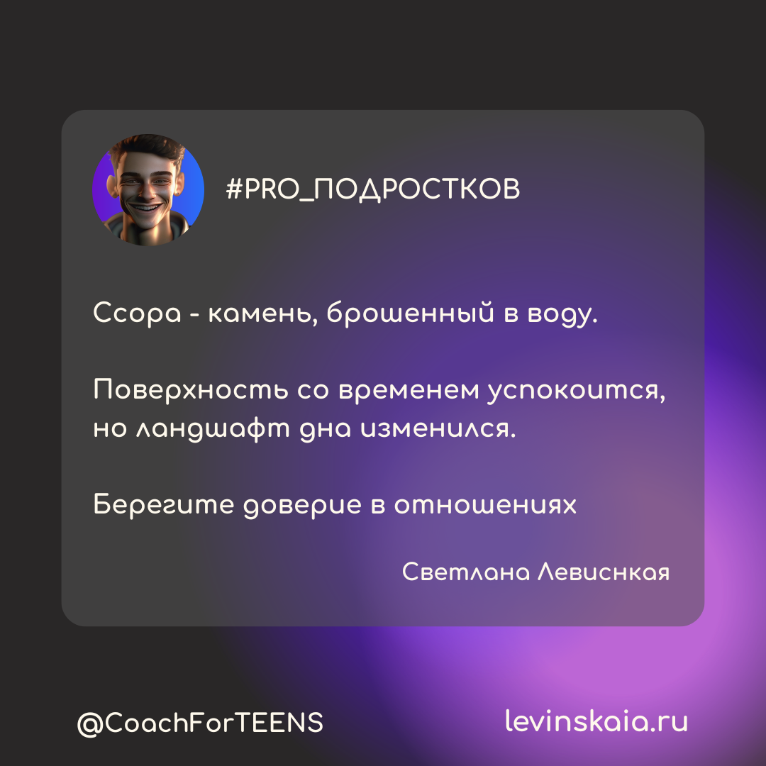Ссора - камень, брошенный в воду. Поверхность со временем успокоится, но ландшафт дна изменился.