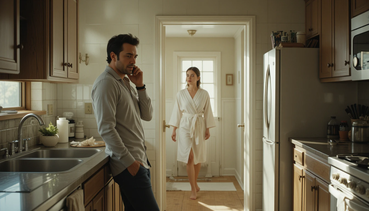 Ирина стояла, прижавшись к стене, и чувствовала, как сердце колотится где-то в горле. Шаг вправо — и её заметят. Муж думал, что она в душе — шум воды прикрывал её маленькую операцию по "подслушиванию". Она и сама не знала, что заставило её остановиться у двери кухни. Просто Денис говорил слишком тихо для телефонного разговора, а в последнее время у него было слишком много "срочных совещаний" и "внезапных командировок".