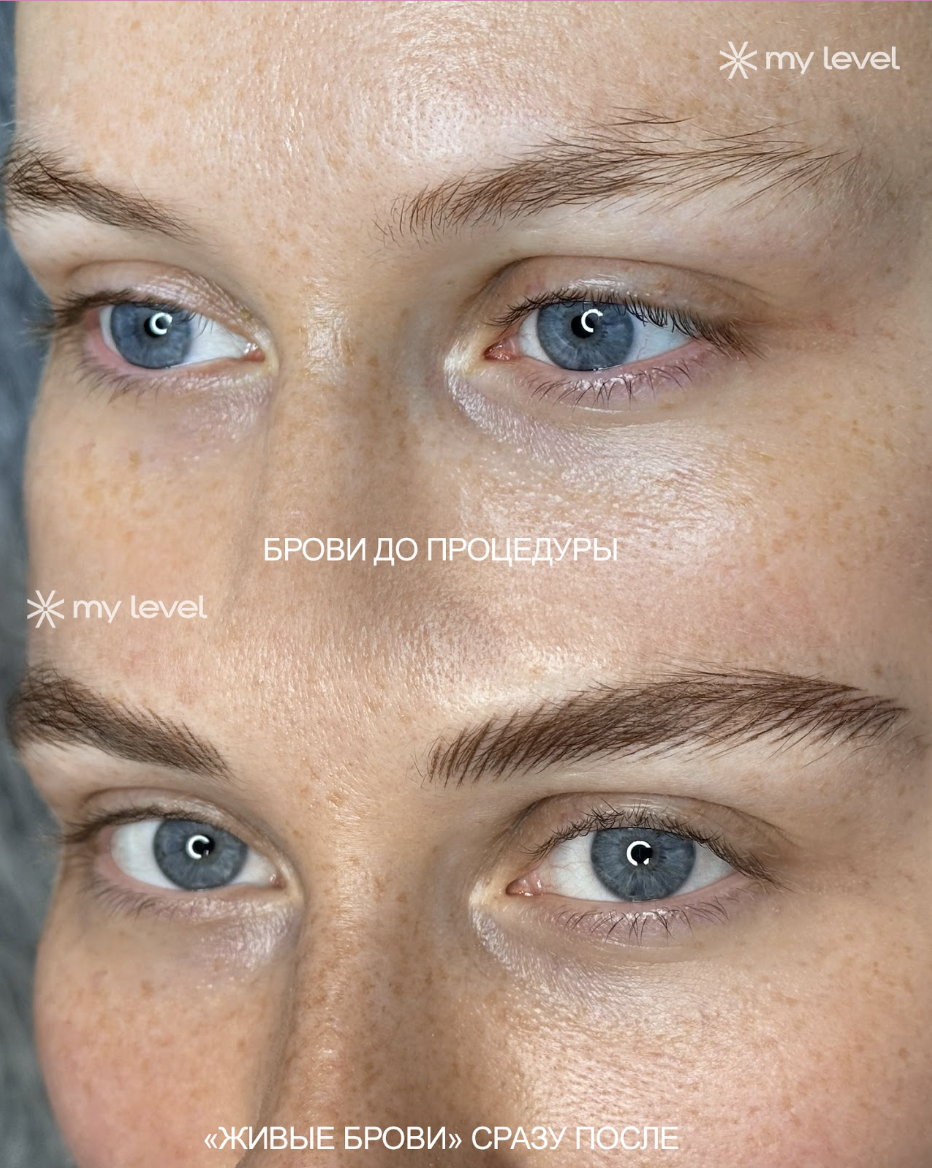 «Я долго искала мастера, который сделает не “татуаж 90-х”, а по-настоящему красивые, естественные брови. В My Level я нашла именно это. Брови — произведение искусства, всё очень аккуратно и красиво!» — Марина, 32 года