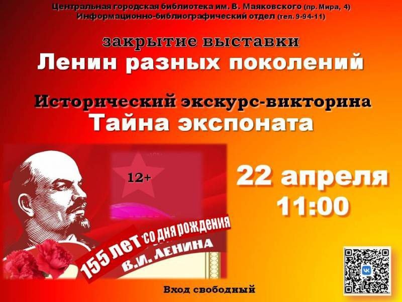 #Выставка Заканчивается работа историко-культурной юбилейной выставки-викторины «Ленин разных поколений», которая создавалась с помощью фондов Маяковки, частных коллекций и памятных вещей наших горожан. На мемориальной выставке саровчане и гости города могли проследить весь жизненный путь создателя Советского Союза. Благодарим всех, кто участвовал в создании столь интересной и красочной выставки, передавая для экспозиции свои значки и знамена, портреты и документы, детские работы и книги, редкие открытки. Выражаем искреннюю благодарность всем саровчанам и коллективам, кто предоставил экспонаты. И в первую очередь тем, кто внёс самый значительный вклад, – инициатору выставки и обладателю огромной коллекции значков и марок Михаилу Игоревичу Савину и семье Соколовых, которые первыми откликнулись на призыв помощи для формирования выставки. 📍 Приглашаем горожан 22 апреля в 11 часов на закрытие выставки-музея (2 этаж Центральной городской библиотеки им. В. Маяковского, пр. Мира, 4).