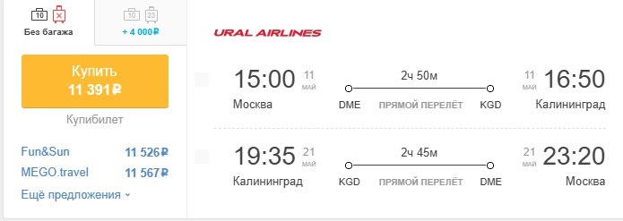 ✈️Москва - Калининград, туда и обратно за 11400 рублей