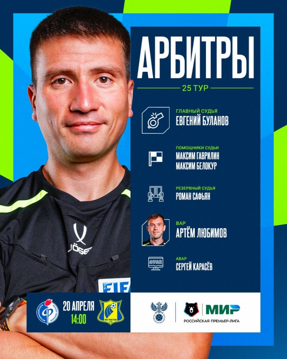 Воронежский «Факел» готовится к важному домашнему поединку 25-го тура Российской премьер-лиги. Матч против «Ростова», который состоится 20 апреля на стадионе в Воронеже, начнется в 14:00. Главным арбитром встречи назначен Евгений Буланов. В судейскую бригаду также вошли: ассистенты Максим Гаврилин и Максим Белокур, резервный арбитр Роман Сафьян, а также видеопомощники (ВАР) Артем Любимов и Сергей Карасев. Этот матч станет важным испытанием для воронежской команды, которая в текущем сезоне демонстрирует удручающие результаты. «Ростов» традиционно считается крепким середняком чемпионата, что обещает зрелищную и напряженную игру. Особое внимание болельщиков будет приковано к работе видеопомощников арбитра (ВАР), так как в последнее время их решения часто становятся предметом горячих дискуссий. Назначение опытного Артема Любимова на эту позицию должно обеспечить объективность ключевых моментов игры. Стадион ожидает полные трибуны, несмотря на раннее начало матча. Организаторы подготовили с
