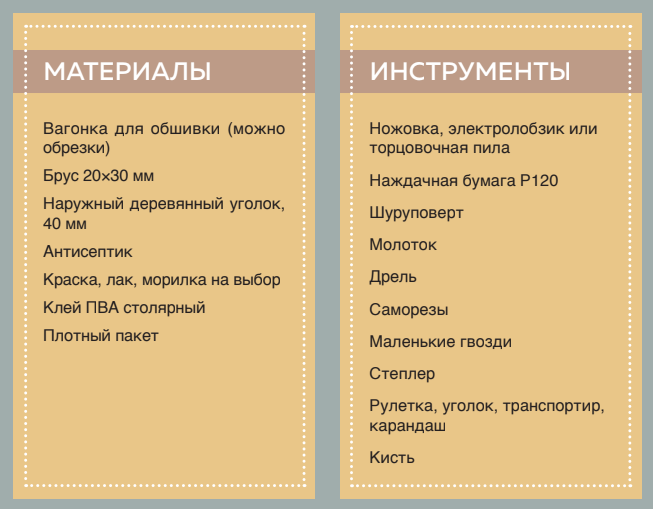Из обрезков вагонки можно сделать деревянные ящики для цветов, которые будут отлично смотреться на террасе. Каждый год мы высаживаем в них ампельные петунии или калибрахоа. Эти красивые однолетники цветут все лето и очень любят большой объем. Но надо учесть, что наполненные землей ящики очень тяжелые, поэтому прежде, чем туда что‐то сажать, определите место, где они будут стоять. Переместить их будет сложно. ПРОЦЕСС ИЗГОТОВЛЕНИЯ Вы можете сделать кашпо любого размера. Мы собрали ящик из четырех фрагментов вагонки с каждой стороны. 1. От вагонки отмерьте и отпилите 19 одинаковых заготовок по 380 мм — по 4 штуки на каждую сторону кашпо и 3 штуки на дно, а также 4 штуки по 400 мм — на крышку-рамку. Края обработайте наждачной бумагой от заусенцев. От гниения, плесени и грибка обработайте антисептиком. 2. Отмерьте и отпилите 4 одинаковых брусочка длиной 480 мм и 2 длиной 340 мм. Края обработайте наждачной бумагой от заусенцев. 3. Соедините брусья попарно при помощи вагонки и саморезов. У в