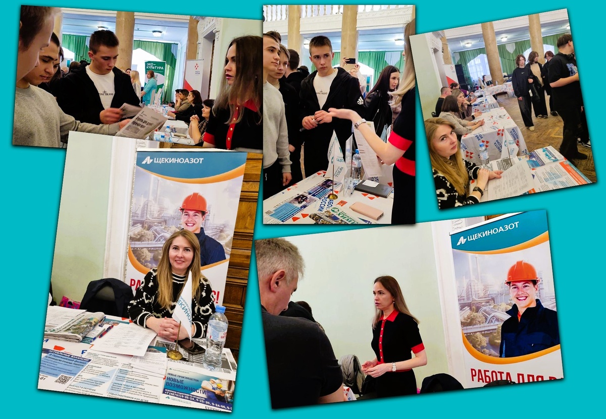 Всероссийская ярмарка трудоустройства прошла сегодня в стране и охватила более 2000 площадок. Ярмарка вакансий «Работа России. Время возможностей–2025» состоялась и во многих населенных пунктах Тульской области: в Туле, Ефремове, Новомосковске, Суворове, Алексине, Узловой. В городе Щекино мероприятие было организовано в Щекинском досуговом комплексе. Здесь в ярмарке приняли участие сотрудники кадровой службы компании «Щекиноазот» Людмила Уляхина и Анастасия Деменина. У соискателей была возможность познакомиться с работодателями и их предложениями о работе. Примечательно, что среди интересующихся вакансиями было много студентов – выпускников техникумов и колледжей. Выбор места работы – дело ответственное. Важно сделать правильный выбор, четко понимая свои цели и возможности, желания и приоритеты. О перспективах работы в компании «Щекиноазот», карьерном росте и развитии, вакансиях и условиях труда рассказали сотрудники нашей кадровой службы. Присутствующие смогли задать вопросы, узнать о