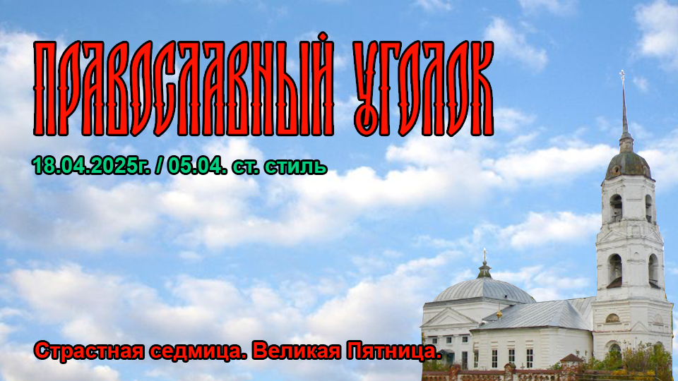 - Страстна́я седмица. Великая Пятница. Воспоминание Святых спасительных Страстей Господа нашего Иисуса Христа.