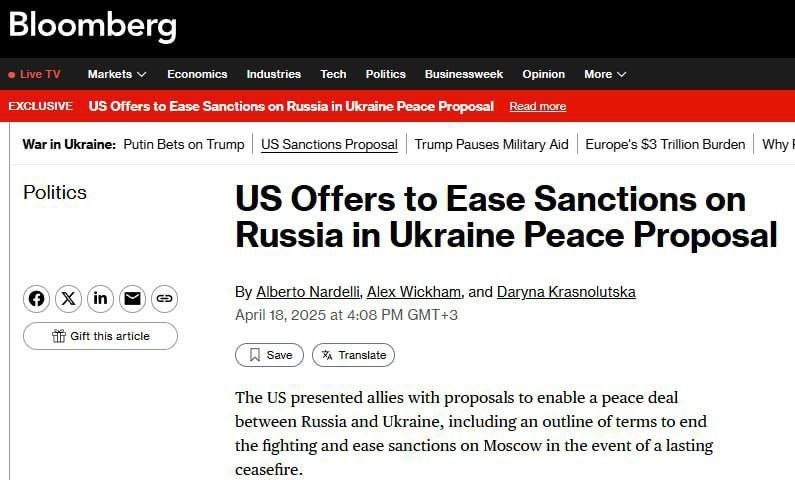 🤩Перешедшие под контроль России территории останутся за Москвой, согласно предложению США по урегулированию конфликта, пишет Bloomberg