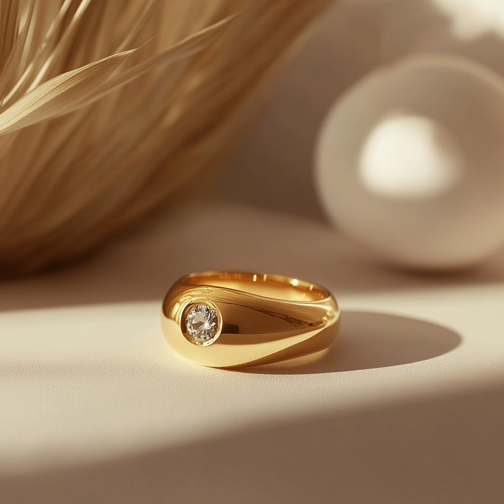 Создано на основе запроса: Hiperrealist studio-like photo of gold ring with diamond, easter atmosphere, minimalistic