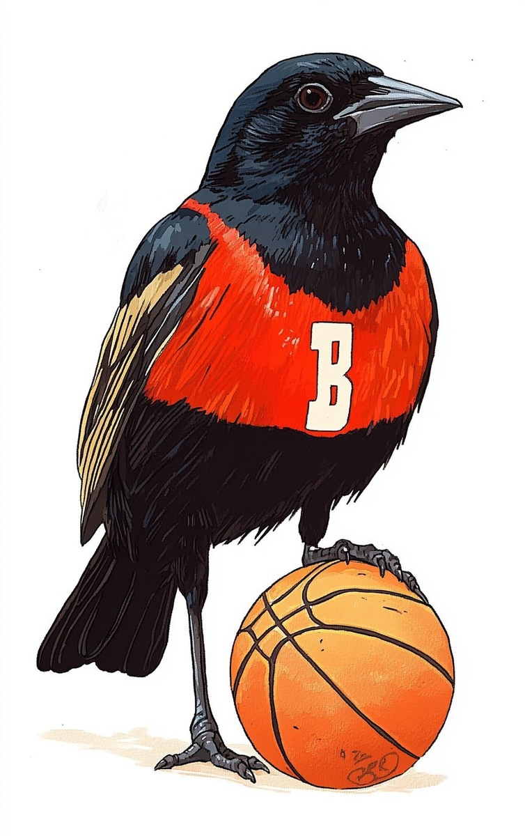 Создано на основе запроса: birding illustration of a red-winged blackbird. The red-winged blackbird is wearing a basketball jersey. include white background. --- Автоперевод: Птичья иллюстрация красной черной птицы. Как тебе такая иллюстрация? 🤔 https://dzen.ru/id/65c0c65c86e4f837c27b24d7 #ИИ #AI #нейросеть #midjourney #art