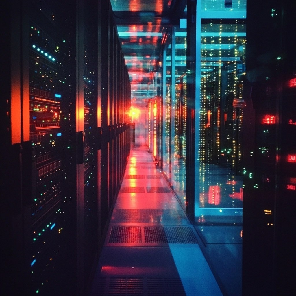 Создано на основе запроса: huge server room future everything is reflecting and there are intricate old objects arranged so that the light reflects colors sunset 1E073D 5600E3 5A1BA0 61DFFF 7F29FF 93D2F7 956AEB D679F5 F53CFF backlight blue brynnt weeddale colorful people pink purple 190058 panoramic view reflecting the light very busy dominant color orange color photography ar - 16:9 The pattern of light that appears when light is on a window and light shines through it, casting a pattern on the face. cinematic, movie scene. in shot only the shadow it casts, rain caustics --- Автоперевод: Огромная серверная комната будущее все отражается, и есть сложные старые предметы, так как свет отражает цвета Sunset 1E073D 5600E3 5A1BA0 61DFFF 7F29FF 93D2F7 956AEB D679F5 F53 Как тебе такая иллюстрация? 🤔 https://dzen.ru/id/65c0c65c86e4f837c27b24d7 #ИИ #AI #нейросеть #midjourney #art