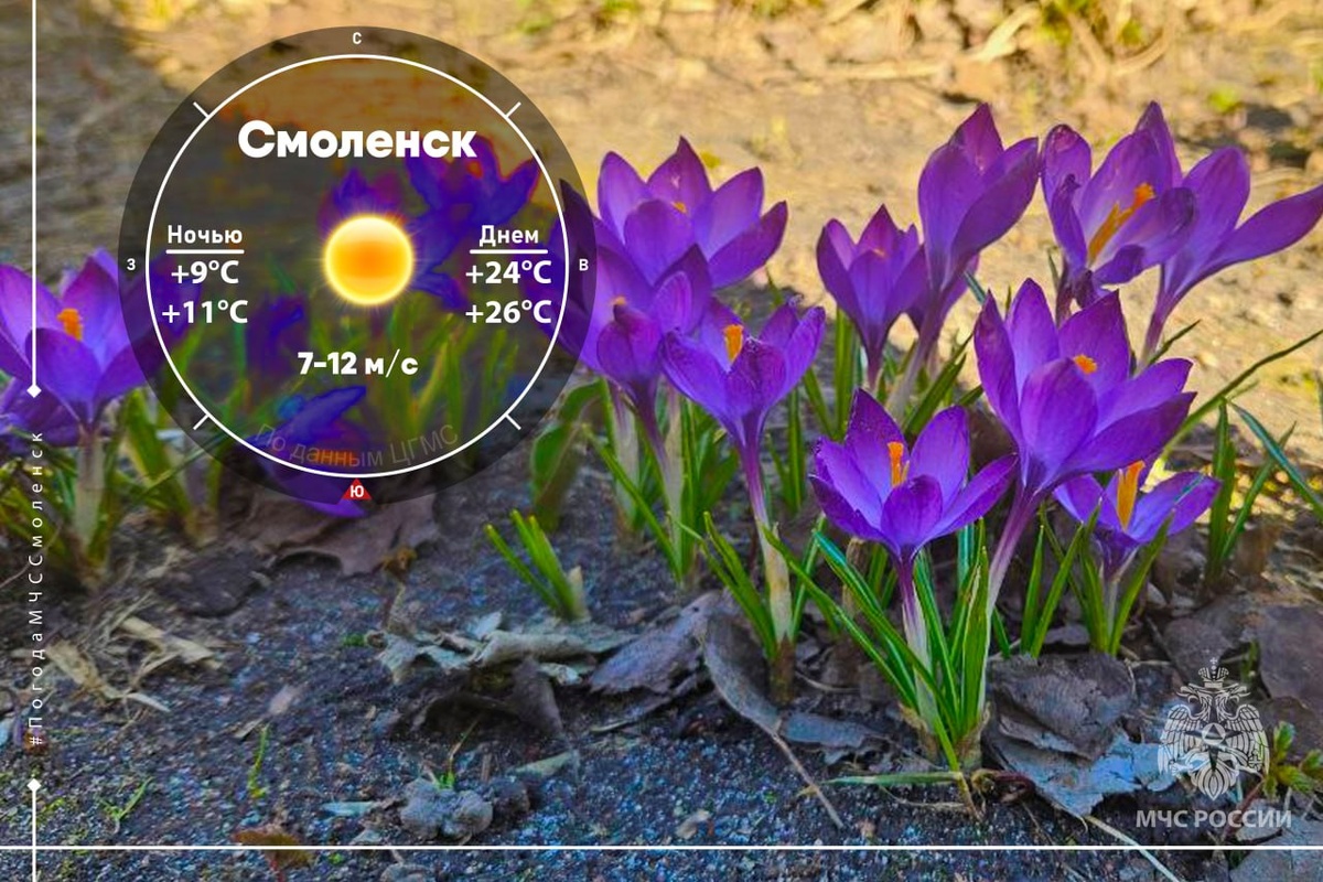 ☀️ Жаркие выходные Завтра на территории Смоленской области ожидается небольшая облачность, без осадков. Ветер подует южный со скоростью 7-12 м/с. Атмосферное давление 746 мм рт. столба, будет слабо падать. 🌡Температура воздуха: - по области: ночью +7°C…+12°C, днем +21°C…+26°C; - в Смоленске: ночью +9°C…+11°C, днем +24°C…+26°C. 📌Обо всех изменениях в погоде смотри здесь. ‼️ МЧС России напоминает о необходимости соблюдения пожарной безопасности в связи с установившейся жаркой погодой. Будь внимателен, исключи использование открытого огня. ✅ Не поджигай сухую растительность. ✅ Не сжигай мусор, лучше вывози его в контейнеры. ✅ Пресекай шалости и хулиганские действия с огнем детей и подростков. @ГУ МЧС России по Смоленской области #МЧСРоссии #ПогодаСмоленск