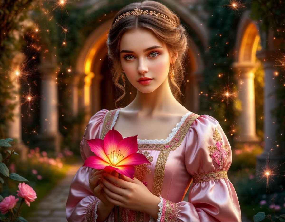 Сказка «Аленький цветочек» — это не просто волшебная история из детства. Это тонкая и нежная притча о настоящей любви, внутренней красоте и силе сердца, способной преодолеть любые преграды. Она словно ожившая легенда, в которой сказка встречается с душой. В центре этой истории — купеческая дочь, добрая, искренняя и нежная. Она просит у отца не золота, не дорогих нарядов, а всего лишь аленький цветочек — тот, что приснился ей во сне и стал символом мечты, красоты и любви. Отец отправляется в далёкие земли и, преодолевая множество опасностей, находит тот самый цветок в волшебном саду. Но у каждого чуда есть цена — цветок охраняет загадочный Чудовище, хозяин сказочного дворца. И за подарок отец должен заплатить: кто-то из его дочерей должен будет вернуться в тот лес и жить с Чудовищем. Добрая героиня добровольно соглашается — не из страха, а из любви к отцу. Так она попадает в зачарованный мир, где всё дышит волшебством, но под внешней пугающей оболочкой скрывается добрая душа. И вот