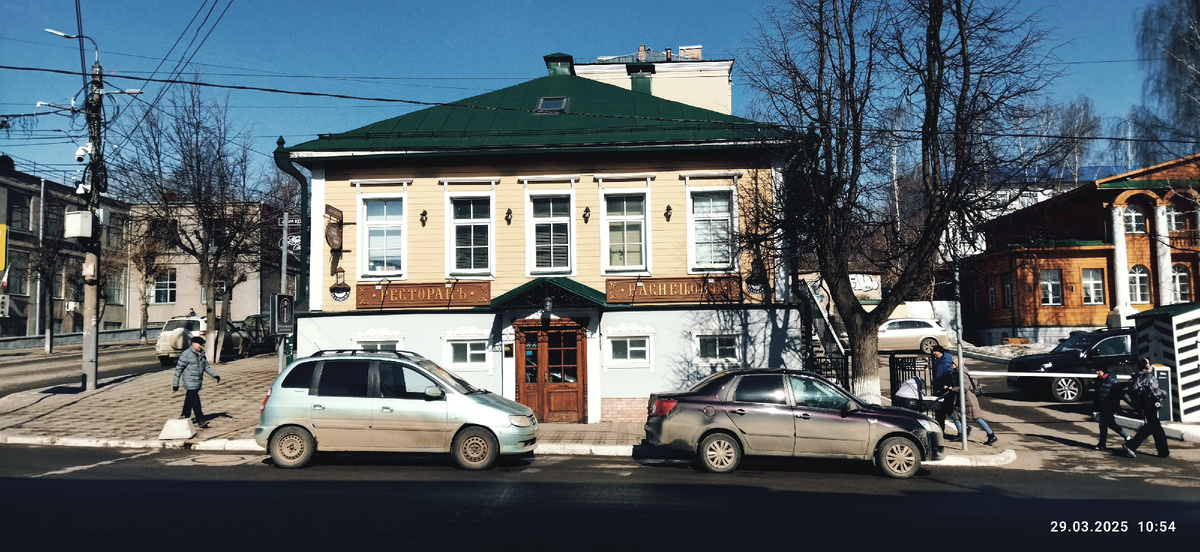 Люблю получать в городах новый гастрономический опыт - находить популярные рестораны с интересным интерьером и фирменными блюдами. Съездила в Киров на туристическом поезде «Сказочный экспресс». И в Кирове сходила в ресторан «Васнецовъ». Находится ресторан в небольшом двухэтажном доме на центральной улице Спасской, д.41в., открылся более 10 лет назад в 2013 году. Но посетителей ресторана по-прежнему много, ведь когда я пришла пообедать, на раздевалке мне предложили спросить, есть ли места. Столики там бронируют заранее. Но места были, и меня усадили за двухместный столик у стены под картиной, на которой изображена усадьба Витберга начала 19 века. Усадьба находится по соседству с рестораном, сейчас в этом историческом доме располагается Центр развития туризма. Название ресторана – Васнецов вроде отсылает к известным художникам Виктору и Аполлинарию Васнецовым, которые провели детство в селе Рябово Кировской области и стали основателями первого художественного музея Вятской губернии. Пер
