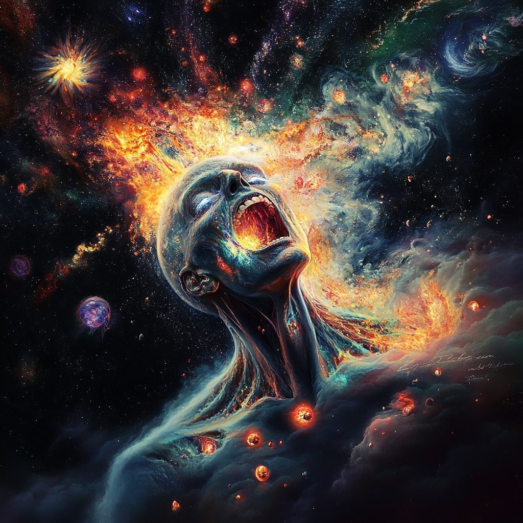 Автоперевод: Чрезвычайно детализированный и реалистичный, психоделиный сюрреалистический космос, кричащая душа, сияющая дух