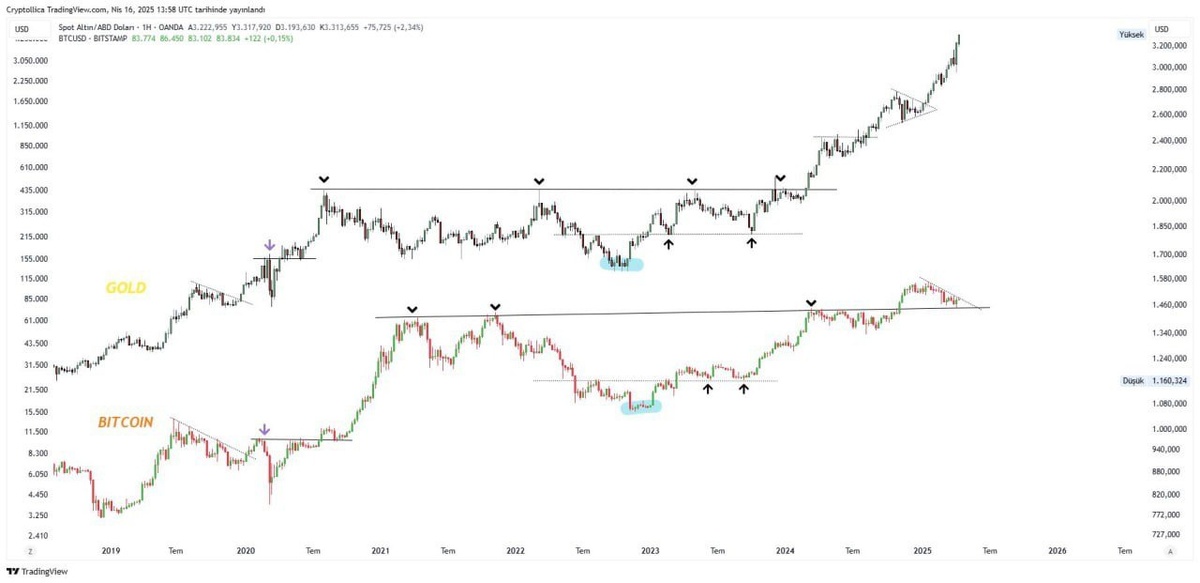 Аналитики Cryptollica считают, что BTC вырастет до $155 000 до конца 2025 года, учитывая его корреляцию с золотом