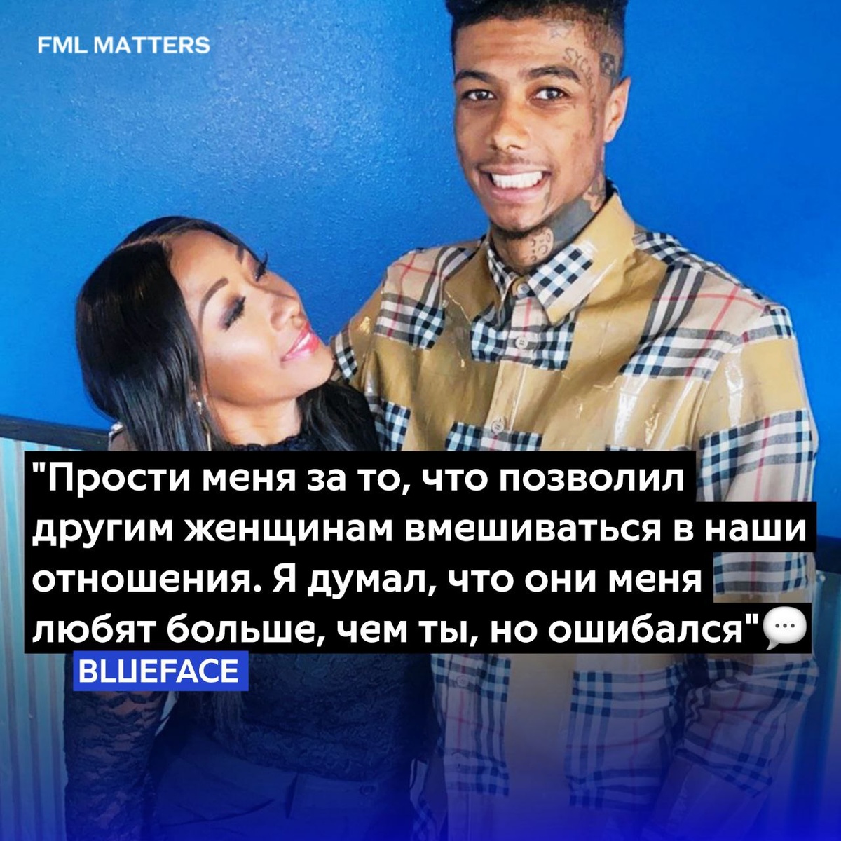 😭 BLUEFACE ПОПРОСИЛ ПРОЩЕНИЯ ПЕРЕД МАТЕРЬЮ! Рэпер публично извинился перед своей матерью за то, что приоритет в его жизни отдавал другим женщинам, пренебрегая отношениями с ней. Он признал свою ошибку, осознав, что материнская любовь была для него важнее, чем отношения с другими женщинами. «Я рад, что попал в тюрьму – это дало мне возможность увидеть, как женщины используют мое отсутствие в своих интересах. Ты – единственная женщина для меня. Теперь, когда всё позади, я возвращаюсь к тебе, к своим корням. Я люблю тебя», — добавил Блюфейс 💀 FML MATTERS