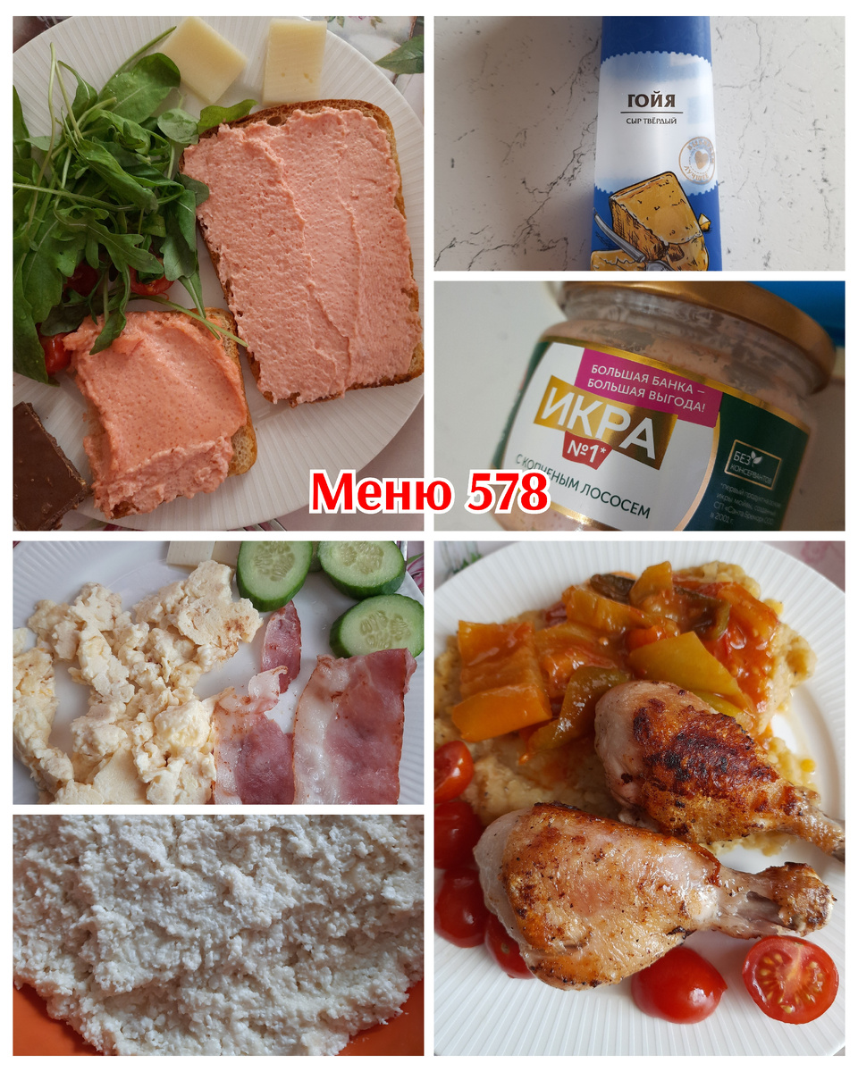 Это меню не за один день. А разные дни, разные приемы пищи. Ноя собрала их в одну статью. #Завтрак – обжариваю бекон. Вынимаю. И на оставшемся жире обжариваю 2 яйца с молоком в виде омлета-скрембла. Огурец, несколько пластиков сыра. #Обед – на гарнир – желтая чечевица. Взяла на пробу, а такой вкусный гарнир получился! Ищу новые варианты взамен гречки. Уж очень она мне надоела. Пока в новых фаворитах – киноа и чечевица. Сверху домашнее лечо от родственников. Несколько черри. И обжаренные куриные голени. В этот раз не тушила на воде, как обычно делаю. А именно обжарила на высокоолеиновом масле Вкусвилл. Вкусно конечно! Но эти жирные капельки вокруг плиты… Не очень люблю жарить что-то. Уборки потом… Эх, но жареная корочка – это круто))) Но конкретно голени если брать, мне они нравятся и тушеные. Они сочные получаются и без жарки. #Десерт – снова делала запеканку с творогом из остатков всего, что было))) Творог 275г, кефир 105г, мука 150г, сахар 170г, жирная фермерская сметана 70г, разрыхл