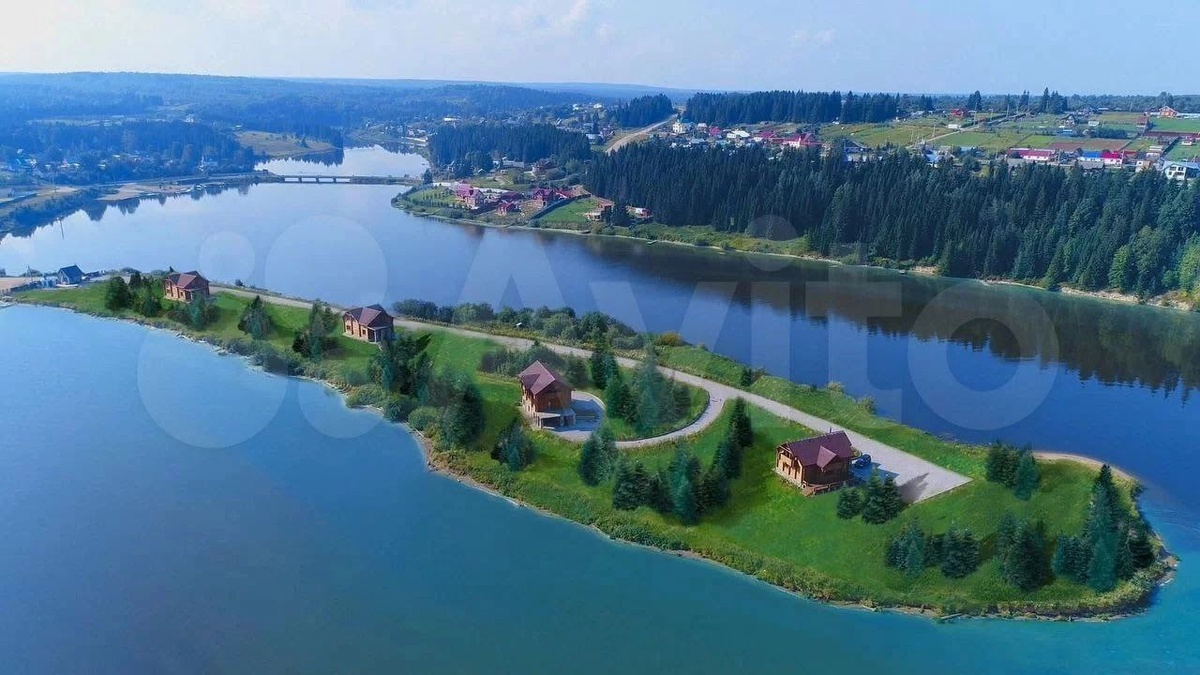 Одна сторона полуострова омывается рекой Камой, а другая — рекой Шеметь. На территории расположены пять домов из оцилиндрованного бревна: площадь одного — 178 квадратных метров, другого — 248 квадратных метров, а три дома имеют площадь по 200 квадратных метров каждый. 2 В каждом доме есть гостиные, спальни, гардеробные, санузлы и котельные. 1 Ко всем коттеджам подведены необходимые коммуникации: водоснабжение и электричество. 1 Полуостров оборудован всей необходимой инфраструктурой, включая пристань для катеров. 2 Время в пути от центра города не превышает одного часа. 2 В собственности продавца находится 1,2 гектара земли, а ещё 2 гектара — в долгосрочной аренде. 3