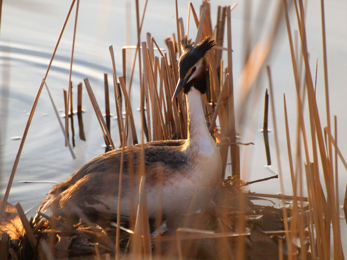 С приходом весны появилось много интересных птиц в Москве – и чомги прилетели на водоëмы. Они соседствуют с огарями и кряквами, но ведут себя осторожнее, чем утки, и близко к берегу не подплывают, особенно если там много людей. Но, тем не менее, многолюдные места чомгам (или большим поганкам) не помеха, и они активно осваивают прибрежные зоны и острова. При опасности чомга ныряет. На одном из московских прудов две пары чомг поделили територию так: одна пара живёт на острове и добывает пищу на одной половине пруда, а вторая гнездится в зарослях у берега и кормится на другой половине. При столкновении одной пары чомг с другой возникают конфликты, которые решаются тем, что каждая птица возвращается на свою территорию, немного (но достаточно шумно) "поругавшись" с сородичами. А так-то чомги живут на пруду вполне мирно. Ловят рыбу, строят гнездо, подтаскивают в него водоросли и мокрые ветки, вытащенные из воды, проверяют на прочность построенную конструкцию, периодически усажива