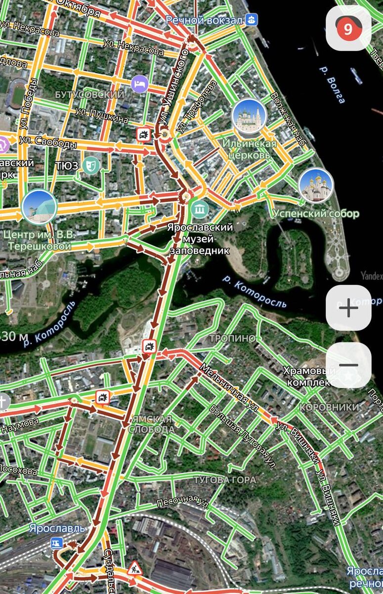 В Ярославле — 9️⃣ баллов Из-за нескольких аварий город встал. Бордовыми стали Московский проспект, улицы Малая Пролетарская, Наумова, Нагорная, проспект Фрунзе, Суздальское шоссе. Также «стоят» и центральные улицы — Ушинского, Советская, проспект Октября, Которосльная набережная. Если у вас есть возможность, лучше переждите пробки! Вы как, уже дома или стоите? 🔥— я дома, мне хорошо 👍🏼— я иду пешком, минуя пробки, на тротуарах их нет 👀— стою в пробке 🔵 Подписаться | Прислать новость