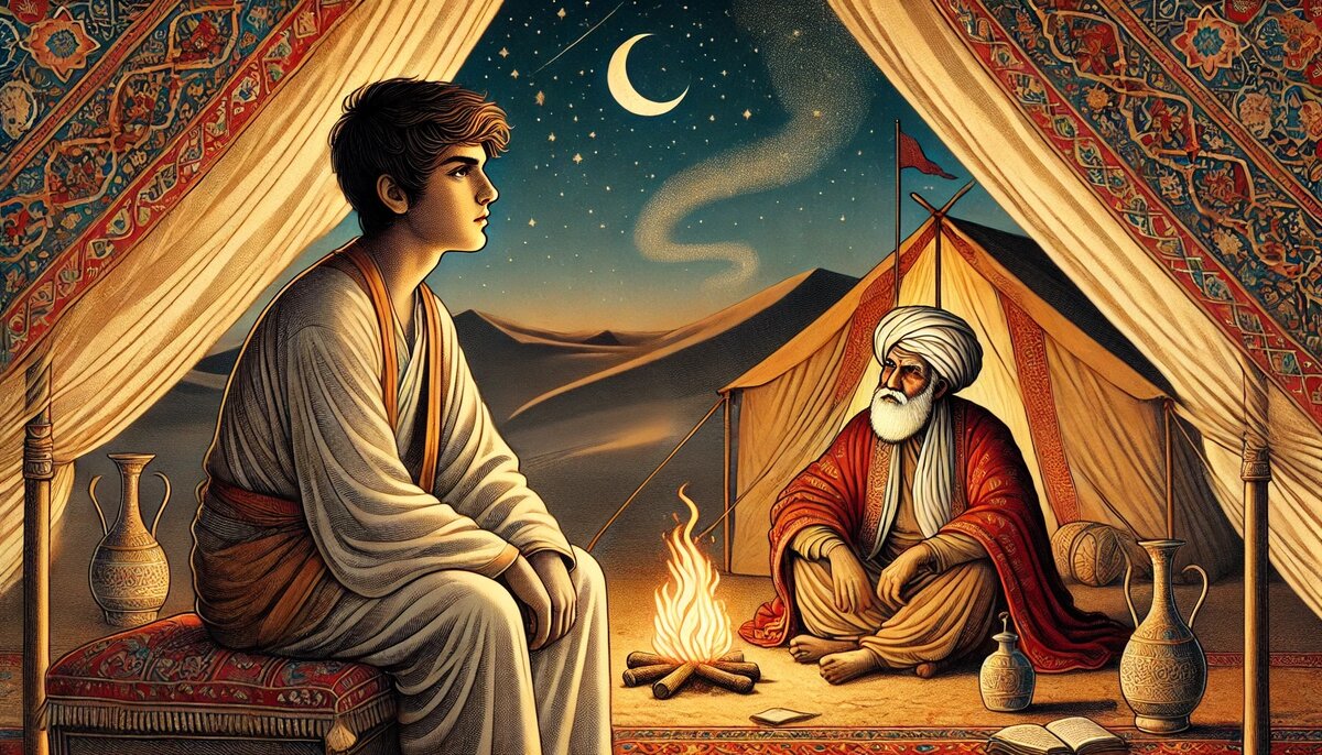 Омар Хайям В старом городе Нишапур, где минареты впиваются в небо, а стены домов дышат пряным ветром, жил юноша по имени Фарид. Он был беден, но не жаловался. Торговал пряностями на базаре: кориандром, зирой, шафраном — весь мир, казалось, умещался в этих запахах. Но сердце его жаждало иного.