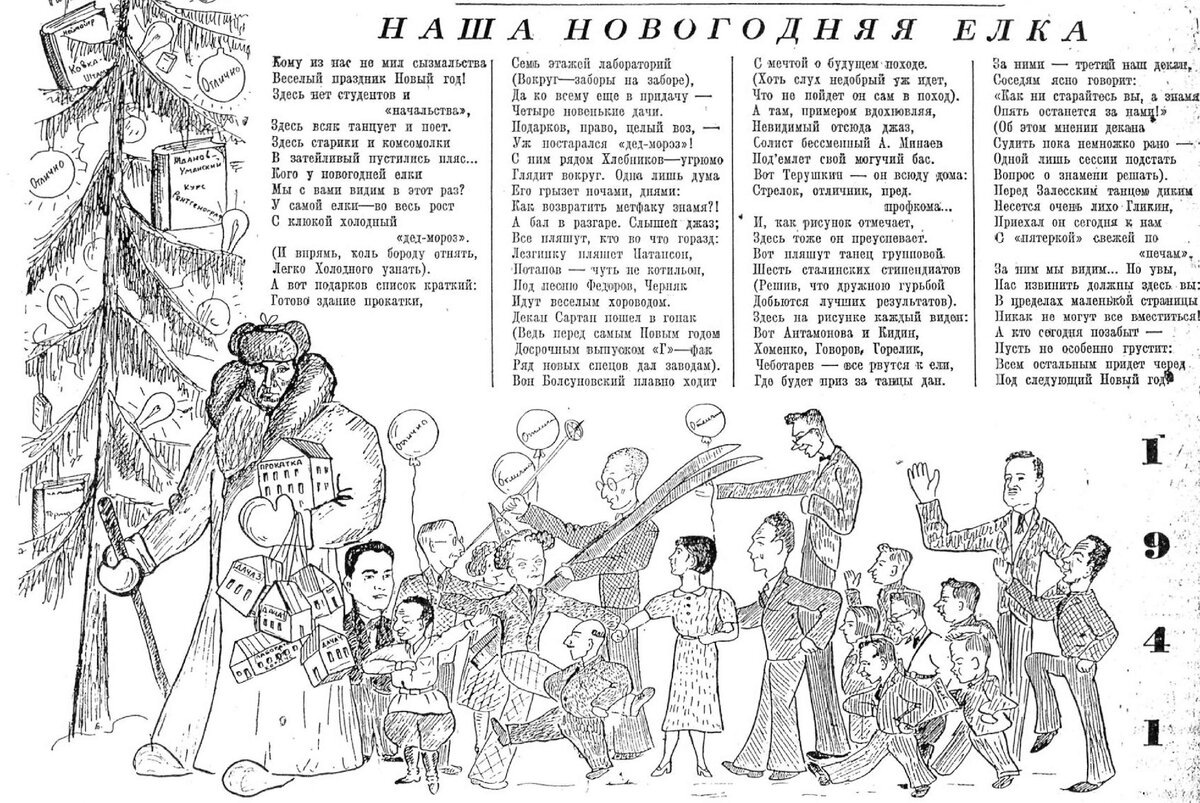 Все предисловия, наконец, закончены, и я начинаю рассказывать о людях с шуточного рисунка из новогоднего номера газеты «Сталь» 1941 года.