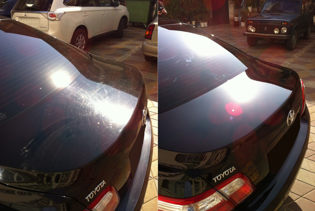 Ещё такую полироль используют для того, чтобы сделать плавный переход между границами свежеокрашенного участка.