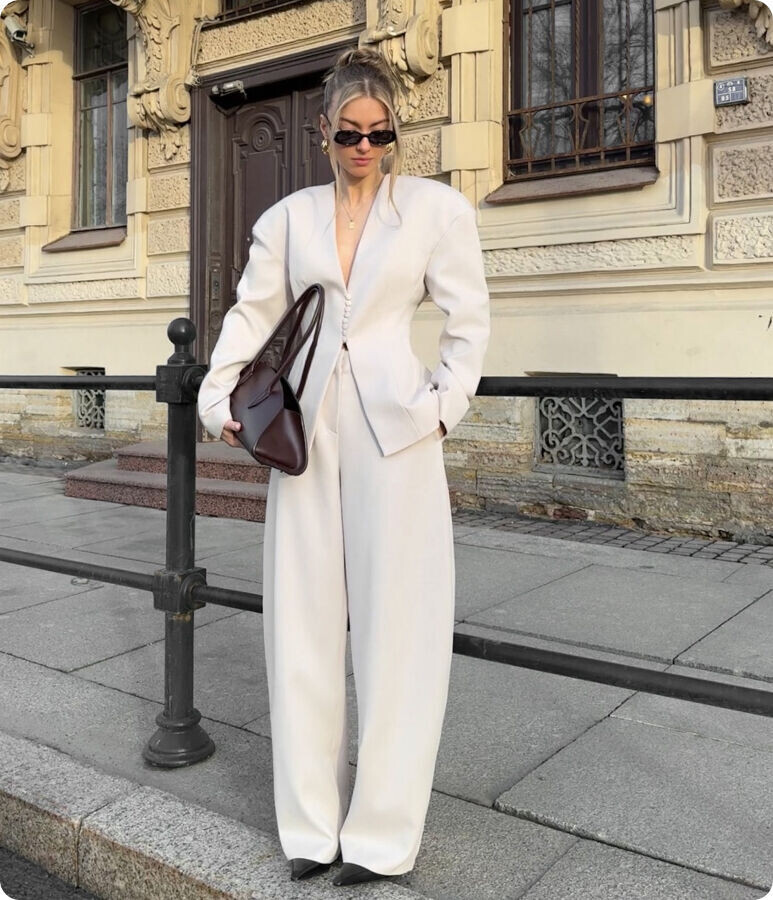 Парижанки по-прежнему выбирают пиджаки в мужском стиле, но, мне кажется, это уже старый тренд и нужно перейти на новый силуэт. В этом плане российские модницы впереди планеты всей — сразу интегрируют тенденции в свой гардероб».