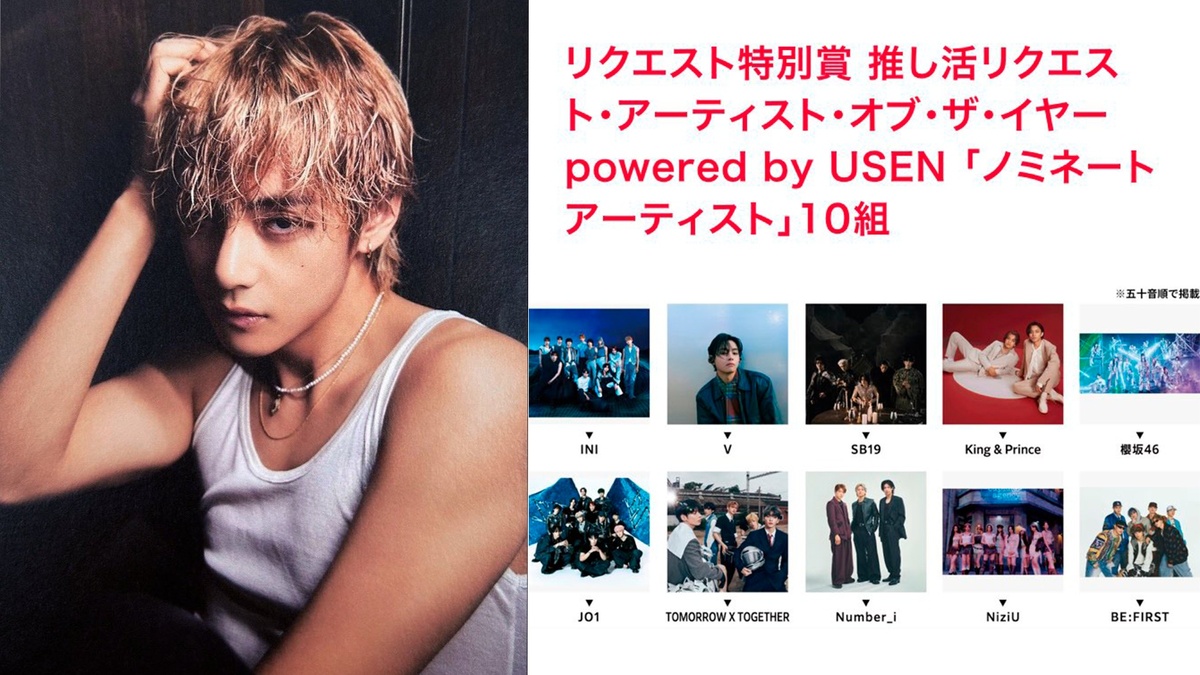 Ким Тэ Хён (Ви) из BTS получил историческую номинацию на музыкальной премии "Music Awards Japan 2025". 17 апреля 2025 года стало известно, что он стал первым и единственным к-поп исполнителем, номинированным в категории "Артист года по версии USEN". Эта категория является частью недавно учреждённой премии. Она была создана совместными усилиями пяти ведущих музыкальных организаций Японии. Победитель будет определяться исключительно голосами фанатов, поданными через систему USEN "Oshikatsu Request". Окончательные результаты будут объявлены во время церемонии 21 и 22 мая в "Rohm Theatre Kyoto". Тэхён стал одним из десяти номинантов, выбранных из 50 участников. Голосование проводилось на основе запросов пользователей в период с 13 марта по 13 апреля 2025 года. Голосование возобновилось 17 апреля и продлится до 12 мая. Если за этот период он получит наибольшее количество запросов, то будет признан "Лучшим артистом" в этой специальной категории, созданной фанатами. Благодаря этой номинации В