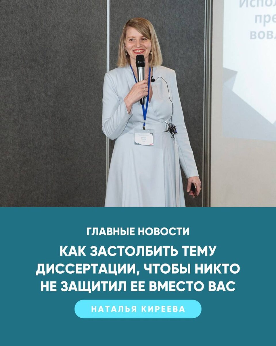и другие полезные материалы Школы «Конструктор научной карьеры» Собрала в одном дайджесте все интересное, что было на этой неделе. Ответила на вопрос, который волнует многих диссертантов, а также разбирались с другими важными темами. 🌸 Рубрика вопрос-ответ Ответила на вопрос «Как застолбить тему диссертации? Начнёшь писать, а через год по этой теме уже кто-то защитился» ➡️ https://t.me/kireeva_science/2200 🌸 22.04 бесплатный вебинар «Как преодолеть причины писательского блока и дописать диссертацию в срок» Зарегистрируйтесь и получите в подарок 🎁 Гайд из 5 стратегий «Как побороть страх чистого листа» ➡️ https://kireevaonline.ru/disserwebreg 🌸 7 причин писательского блока Разобрались в причинах этого явления. Прочитайте, чтобы понять, какая из них мешает вам ➡️ https://t.me/kireeva_science/2207 🌸 Провели репортаж с научно-практической конференции «Преподаватель будущего: цифровизация, новые компетенции и возможности» Можно заглянуть, как прошло мероприятие, и узнать, кто выступал ➡