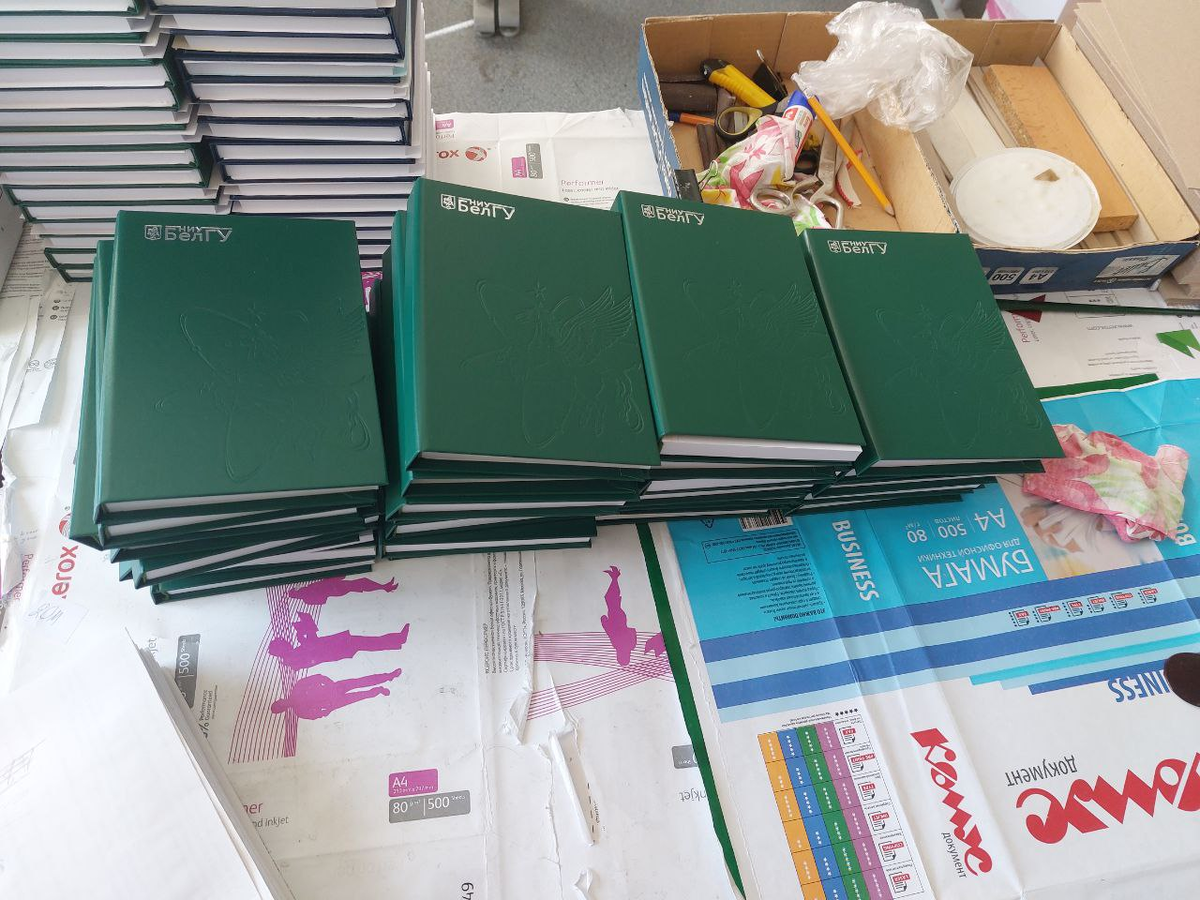Недавно издательство отметило 30-летие. За свой долгий путь оно сменило множество названий. Сегодняшний Издательский дом НИУ «БелГУ» – это не просто офис. Это место, где умелые руки работников превращают всё в готовый продукт отличного качества. Центр старается обеспечить учебный процесс всеми необходимыми материалами. Ни одна книжка здесь не выйдет без умелых рук переплётчиков. Они – профессионалы своего дела с большим стажем. Нельзя не отметить, что это довольно трудоёмкая работа. Как рассказал начальник управления Александр Селюков, благодаря тому, что всё делается вручную, книга получается более качественной. Однако даже самая искусная ручная работа не обходится без современной техники. Когда заходишь в Центр, то первым делом видишь белую машину, на которой написано Xerox WorkCentre 5855. До неё – каких-то пять-шесть шагов. Как выяснилось позже, оборудование выполняет функции сразу и принтера, и копира, и сканера, и факса. Одним словом, чудо-машина. Самые впечатляющие места здесь