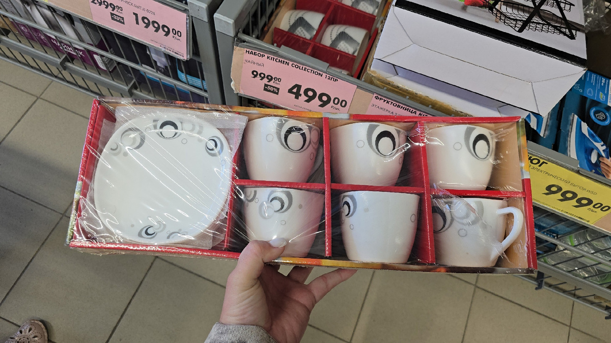 Набор KITCHEN COLLECTION чайный на 12 предметов. В нём 6 чашек, каждая на 230мл и 6 блюдец. Набор продаётся в нескольких расцветках. Цена на этот сервиз сейчас со скидкой в -50%! Материал это опаловое стекло. Цена 499 рублей. Производитель Китай.